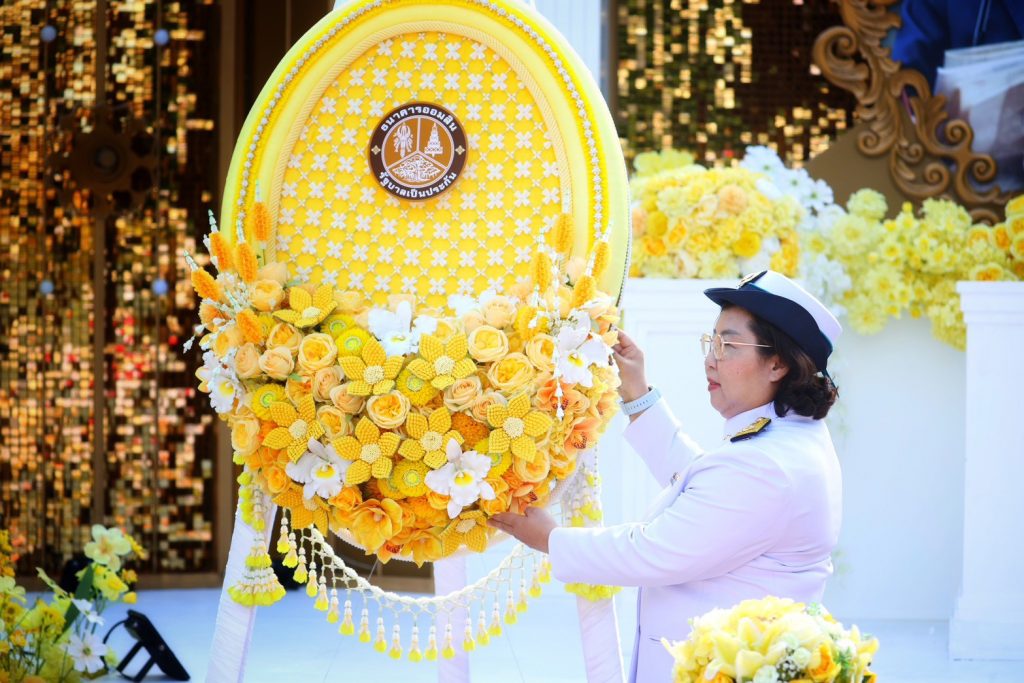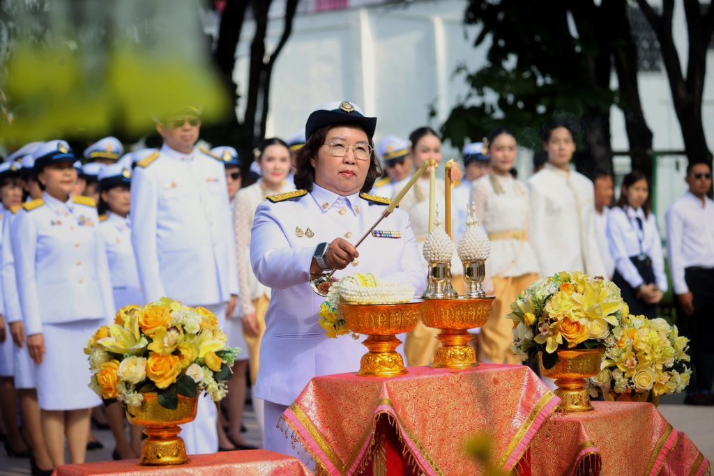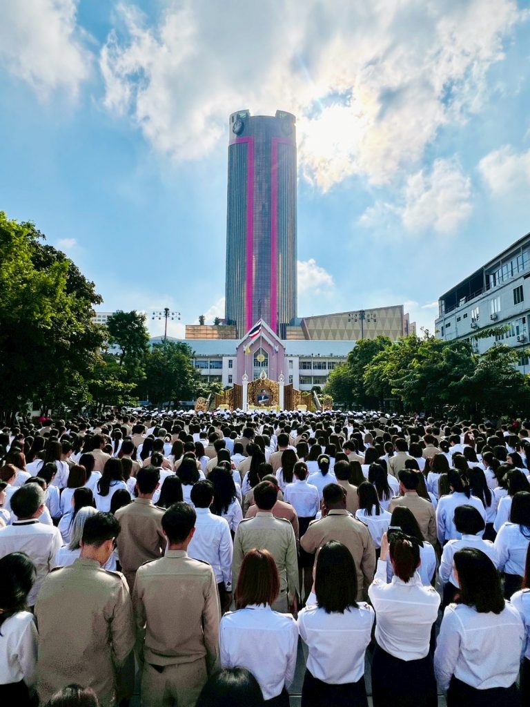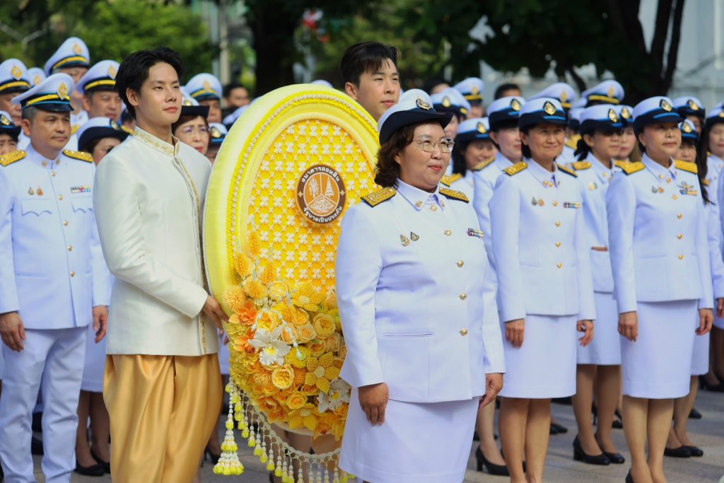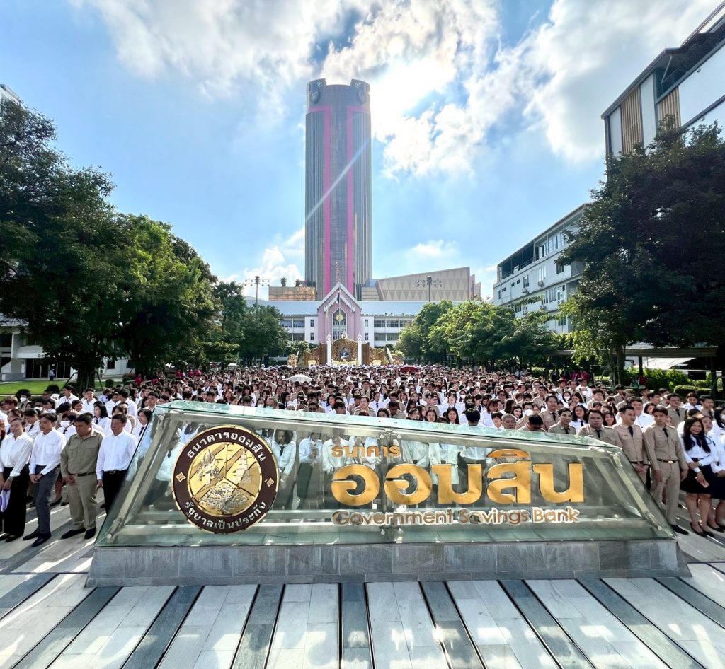 นางลภาวรรณ จันทร์กระจ่าง รองผู้อำนวยการธนาคารออมสิน รักษาการผู้อำนวยการธนาคารออมสิน นำคณะผู้บริหารและพนักงาน ร่วมพิธีวางพวงมาลาถวายสักการะเบื้องหน้าพระบรมฉายาลักษณ์ พระบาทสมเด็จพระบรมชนกาธิเบศร มหาภูมิพลอดุลยเดชมหาราช บรมนาถบพิตร เพื่อน้อมรำลึกในพระมหากรุณาธิคุณและแสดงความจงรักภักดี เนื่องในวันนวมินทรมหาราช วันคล้ายวันสวรรคต 13 ตุลาคม 2568 ณ ธนาคารออมสิน สำนักงานใหญ่ เมื่อวันที่ 10 ตุลาคม 2568