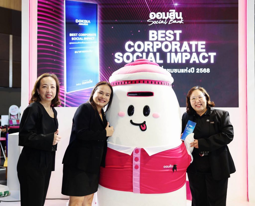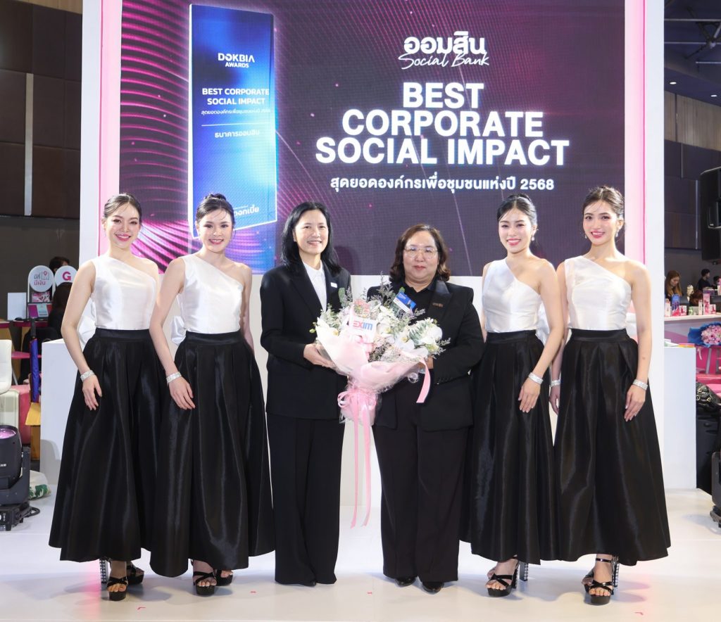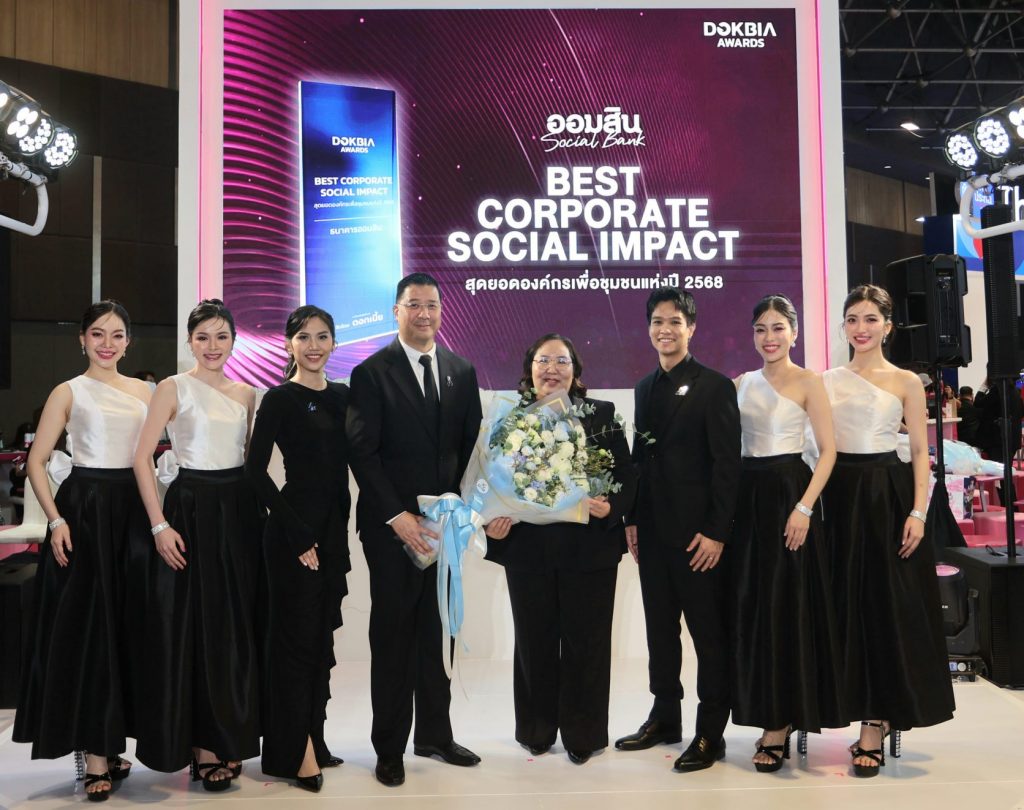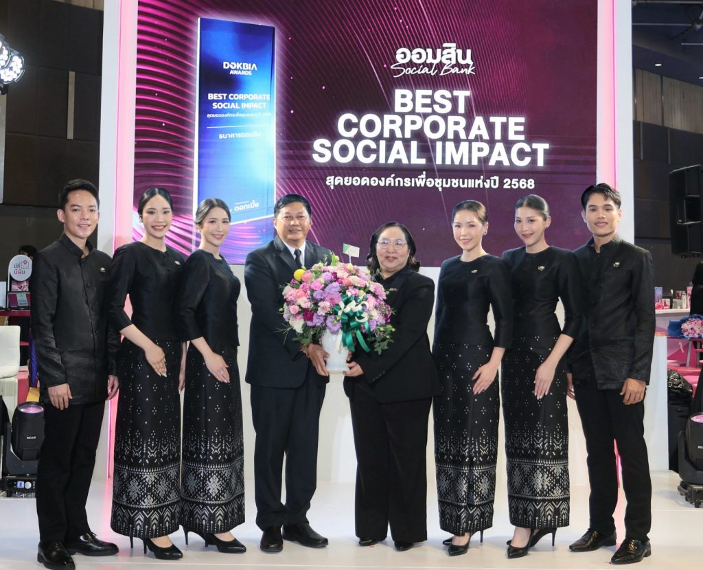 นางลภาวรรณ จันทร์กระจ่าง รองผู้อำนวยการธนาคารออมสิน รักษาการแทนผู้อำนวยการธนาคารออมสิน เป็นผู้แทนธนาคารรับรางวัลเกียรติยศ Best Corporate Social Impact 2025 สุดยอดองค์กรเพื่อชุมชนแห่งปี 2568 จาก นายวิทัย รัตนากร ผู้ว่าการธนาคารแห่งประเทศไทย ประธานในพิธีมอบรางวัล DOKBIA AWARDS ภายในงาน Thailand Smart Money กรุงเทพฯ ครั้งที่ 16