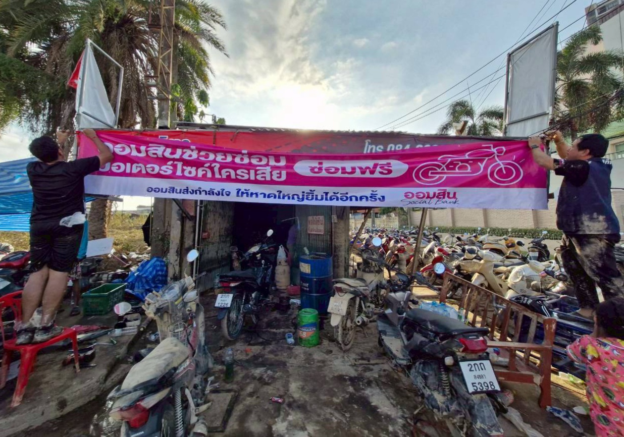 ออมสิน ลุยฟื้นฟูหาดใหญ่ เก็บกวาด–เช็ดล้าง–ซ่อมแซม เปิดจุด “ออมสินช่วยซ่อม” มอเตอร์ไซค์ ฟรี! พร้อมรถโมบายให้บริการฝาก – ถอนเงินสด และโรงครัวออมสิน ณ ลานหน้าห้างบิ๊กซี เอ็กซ์ตร้า หาดใหญ่