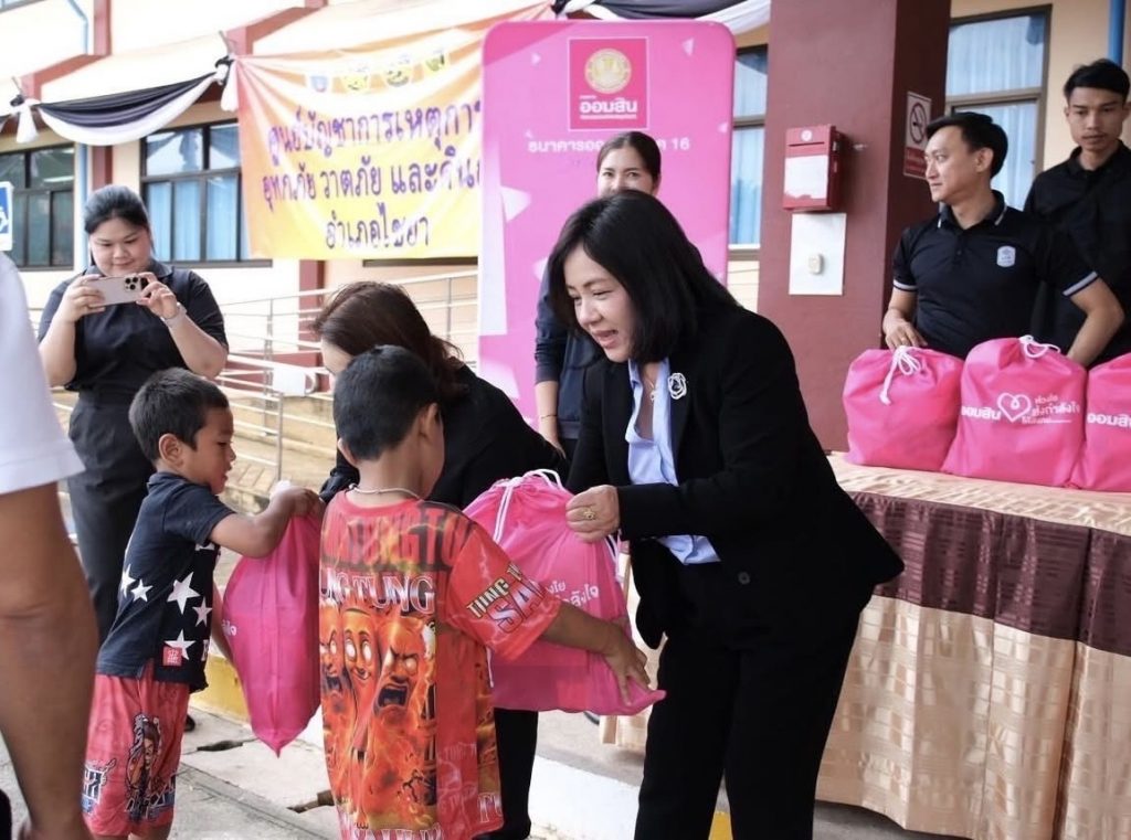 หลังได้รับผลกระทบจากสถานการณ์ฝนตกหนักทำให้เกิดน้ำท่วมเฉียบพลัน ไหลเข้าท่วมบ้านเรือนประชาชน ตลอดจนถนนสาธารณะได้รับความเสียหาย โดยมีหัวหน้าส่วนราชการในพื้นที่ เป็นผู้รับมอบ ทั้งนี้ ธนาคารออมสินเดินหน้าบทบาทการเป็นธนาคารเพื่อสังคม พร้อมเป็นกำลังใจ และยืนหยัดเคียงข้างประชาชนคนไทยในทุกสถานการณ์