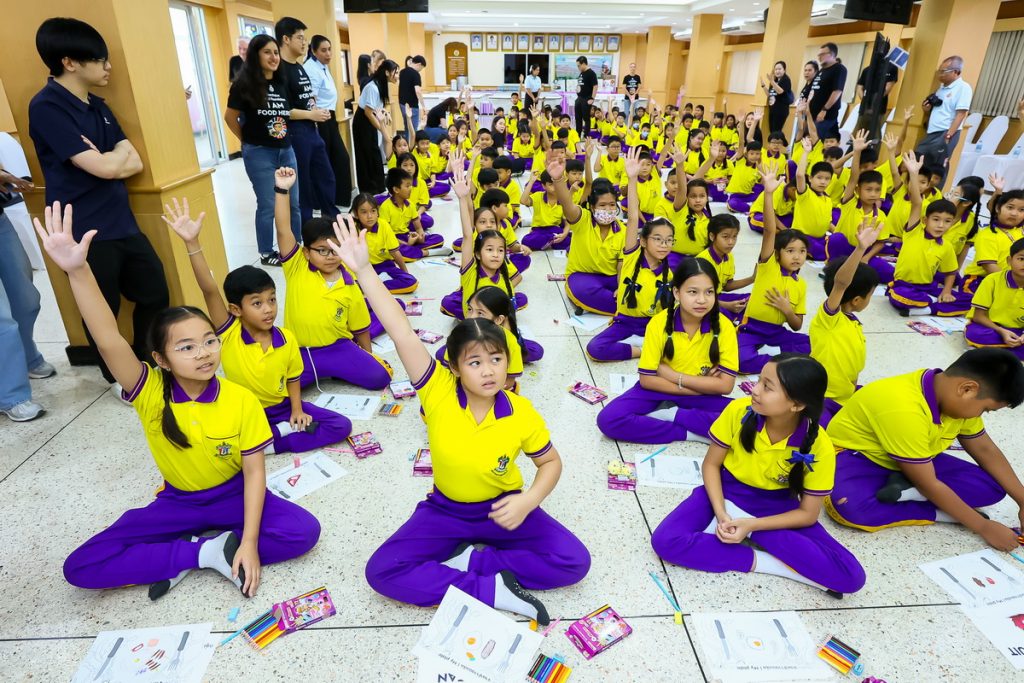 This year, Electrolux Thailand hosted the Food Heroes Workshop for 130 students at Rama IX Kanchanaphisek School, supported by over 30 employee volunteers. The workshop featured engaging activities such as drawing, coloring, and a simple cooking class—decorating cakes with fruit—to teach children about sustainable eating in a fun and interactive way.