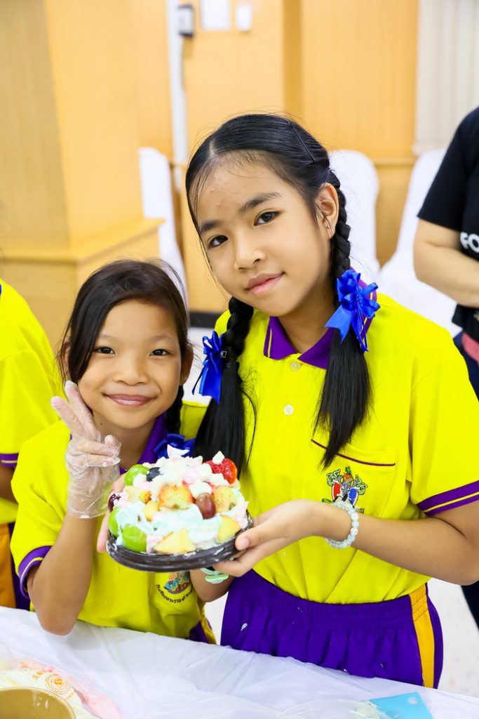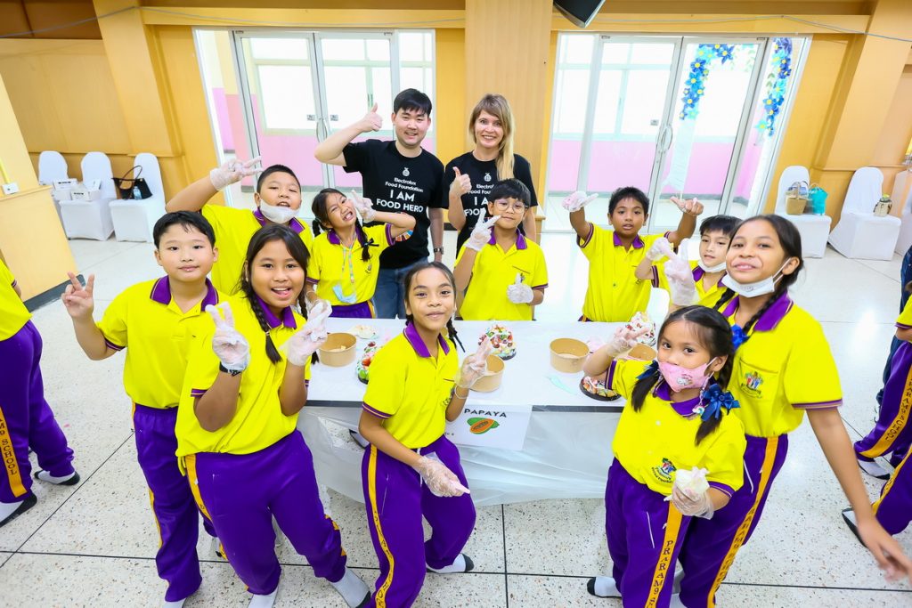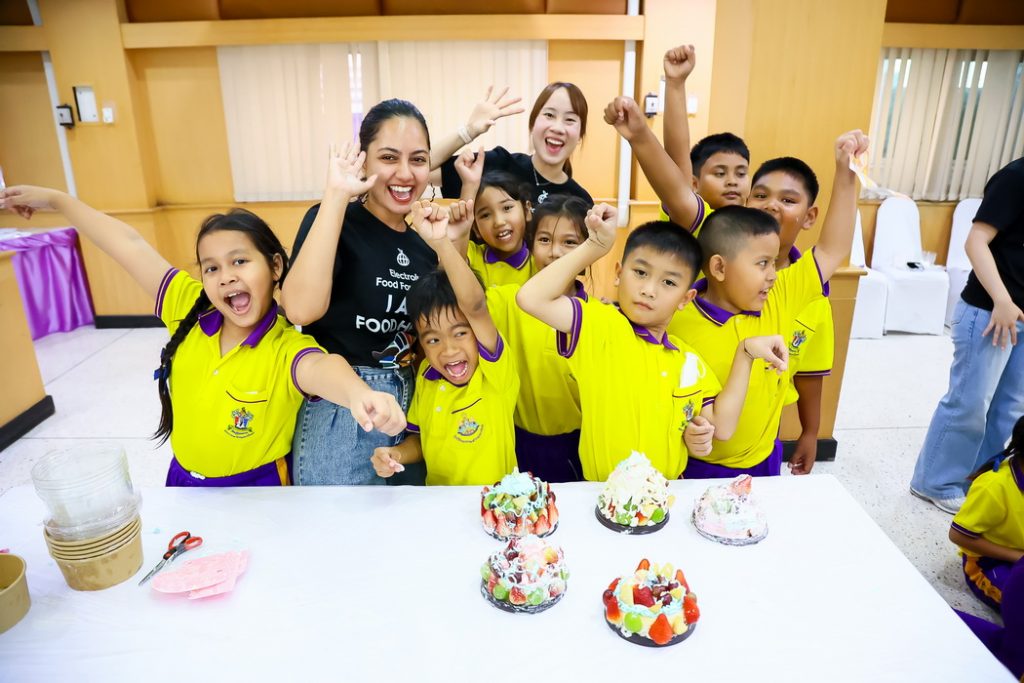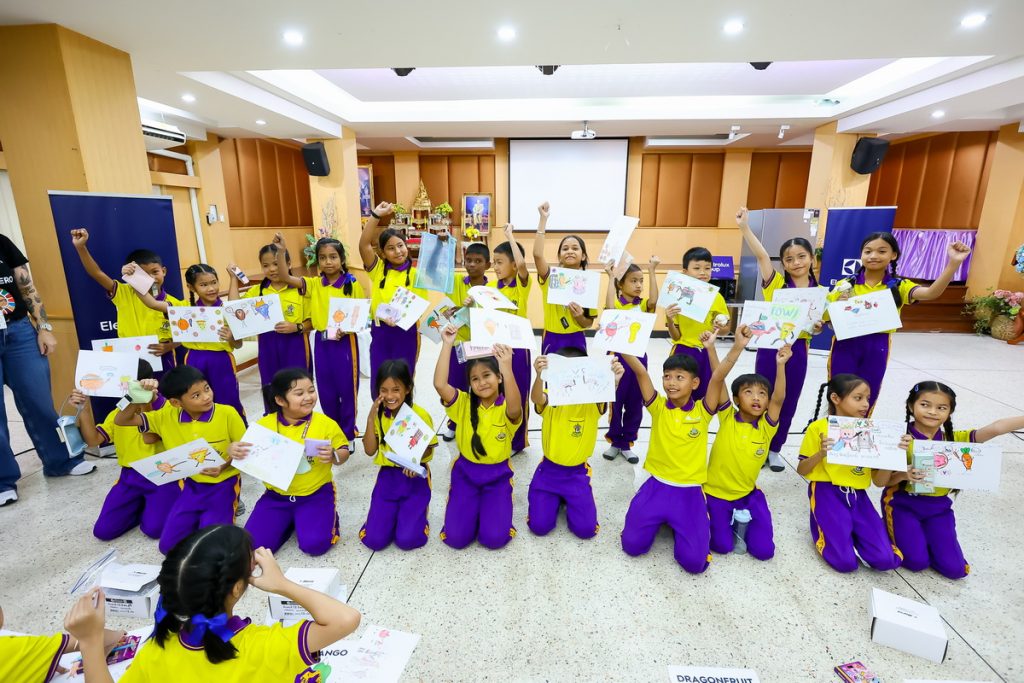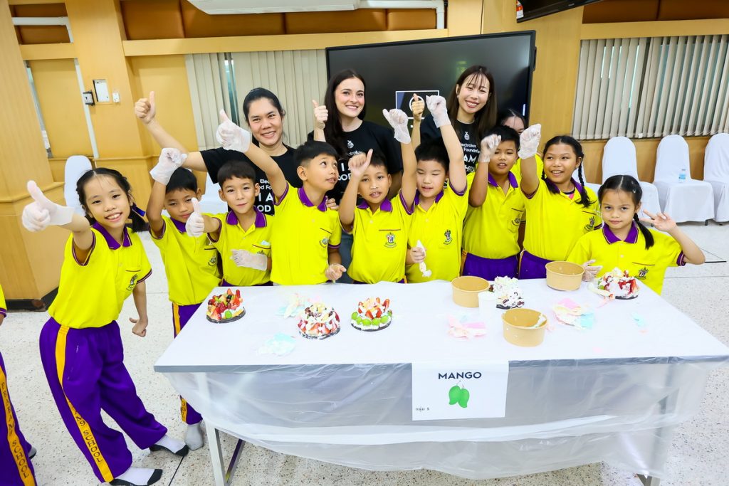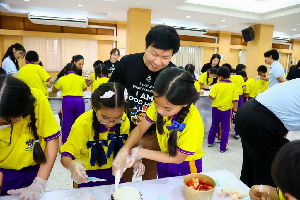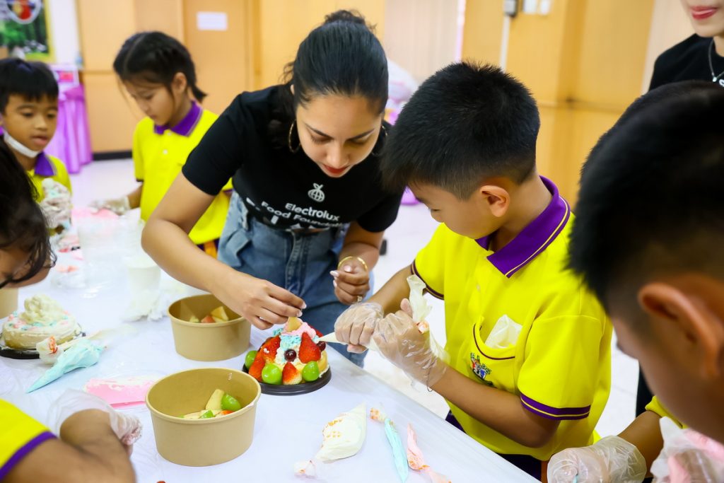 This year, Electrolux Thailand hosted the Food Heroes Workshop for 130 students at Rama IX Kanchanaphisek School, supported by over 30 employee volunteers. The workshop featured engaging activities such as drawing, coloring, and a simple cooking class—decorating cakes with fruit—to teach children about sustainable eating in a fun and interactive way.