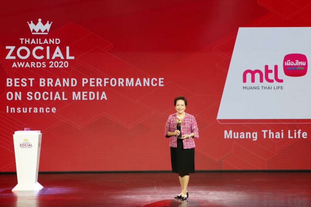นางพิตราภรณ์ บุณยรัตพันธุ์ รองกรรมการผู้จัดการอาวุโส บริษัท เมืองไทยประกันชีวิต จำกัด (มหาชน) เป็นผู้แทนรับรางวัล “Best Brand Performance on Social Media สาขา Insurance” รางวัลแบรนด์ที่ทำผลงานบนโซเชียลมีเดียยอดเยี่ยมในอุตสาหกรรมประกันภัย ในงานประกาศรางวัล Thailand Zocial Awards 2020 ครั้งที่ 8 จัดขึ้นโดยบริษัท ไวช์ไซท์ (ประเทศไทย) จำกัด ผู้ให้บริการด้านการวิเคราะห์ข้อมูลโซเชียลมีเดียอันดับหนึ่งของประเทศไทย การมอบรางวัลในครั้งนี้เป็นการมอบรางวัลให้แก่องค์กรที่มีการทำกิจกรรมบนตลาดโซเชียล ได้อย่างมีประสิทธิภาพสูงสุด ซึ่งถือเป็นรางวัลที่สะท้อนและตอกย้ำถึงความสำเร็จในการเป็นผู้นำการให้บริการ และนำเสนอผลิตภัณฑ์ผ่านช่องทางดิจิทัลที่สามารถตอบโจทย์ความต้องการของลูกค้าได้หลากหลาย ในรูปแบบ เฉพาะบุคคล พร้อมสร้างความมั่งคั่งและมั่นคงอย่างยั่งยืน ในทุกช่วงของชีวิตภายใต้นโยบาย “MTL Everyday Life Partner” งานดังกล่าวจัดขึ้น ณ โรงละครเคแบงก์สยามพิฆเนศ ศูนย์การค้า สยามสแควร์ วัน