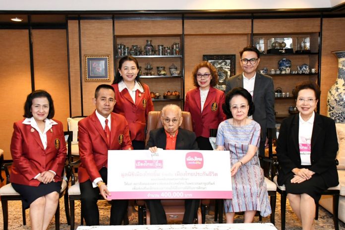 บริษัท เมืองไทยประกันชีวิต จำกัด (มหาชน) ร่วมกับ มูลนิธิเมืองไทยยิ้ม นำโดย นายโพธิพงษ์ ล่ำซำ ประธานกรรมการ บริษัท เมืองไทยประกันชีวิต จำกัด (มหาชน) พร้อมด้วย นางยุพา ล่ำซำ ที่ปรึกษามูลนิธิเมืองไทยยิ้ม และนางพิตราภรณ์ บุณยรัตพันธุ์ รองประธานกรรมการ มูลนิธิเมืองไทยยิ้ม มอบเงินจำนวน 400,000 บาท ให้แก่ สภาสังคมสงเคราะห์แห่งประเทศไทย ในพระบรมราชูปถัมภ์ เพื่อเป็นทุนการศึกษาให้กับเด็กและเยาวชนที่ขาดแคลนทุนทรัพย์ ประจำปี 2567 จำนวน 47 ทุน โดยมี ร้อยตำรวจโท ดร. มนัส โนนุช ประธานสภาสังคมสงเคราะห์แห่งประเทศไทย ในพระบรมราชูปถัมถ์ และคณะประกอบด้วย นางจารุนันท์ อึ้งภากรณ์ รองประธานสภาฯ คนที่ 2 นางธิดารักษ์ สัจจพงษ์ เลขาธิการ และนางศิริพร คัมภีรยส รองเลขาธิการ เป็นผู้รับมอบ
