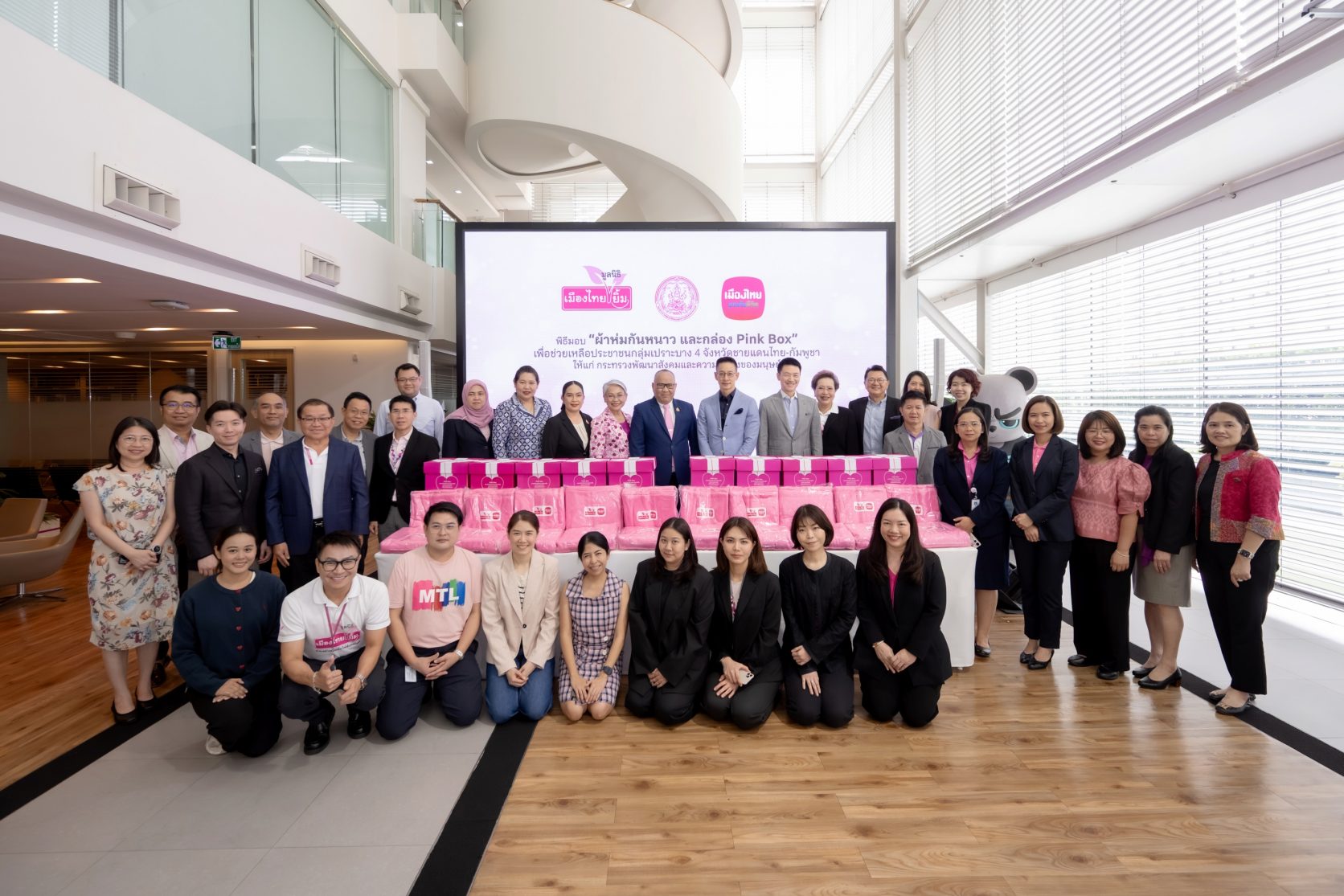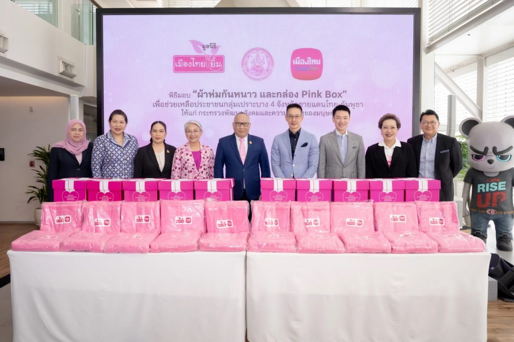เมืองไทยประกันชีวิต และ มูลนิธิเมืองไทยยิ้ม ส่งมอบผ้าห่มกันหนาว และกล่อง Pink Box เพื่อช่วยเหลือประชาชนกลุ่มเปราะบาง ให้แก่ กระทรวงการพัฒนาสังคมและความมั่นคงของมนุษย์