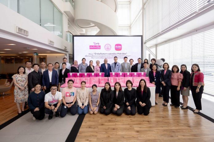 กล่อง “Pink Box” เป็นหนึ่งในกิจกรรมเพื่อสังคมของเมืองไทยประกันชีวิตและมูลนิธิเมืองไทยยิ้มที่จัดขึ้นอย่างต่อเนื่อง เพื่อสานต่องานของกรมกิจการสตรีและสถาบันครอบครัว ในการส่งเสริมความเสมอภาค และเสริมสร้างความเข้มแข็งให้แก่ครอบครัวไทย ภายในกล่องบรรจุสิ่งของจำเป็นในชีวิตประจำวันและของใช้ด้านสุขอนามัย เพื่อมอบให้แก่ “สตรีกลุ่มเปราะบาง” ที่เผชิญกับปัญหาทางสังคมและเศรษฐกิจ อาทิ ผู้หญิงรายได้น้อย แม่เลี้ยงเดี่ยว หญิงตั้งครรภ์ ผู้สูงอายุ ผู้พิการ และครอบครัวที่ยากไร้ โดยมีเป้าหมายเพื่อ สร้างกำลังใจ เติมเต็มความหวัง และส่งต่อพลังบวกให้ผู้รับรู้ว่าพวกเขาไม่ได้ถูกทอดทิ้งจากสังคม