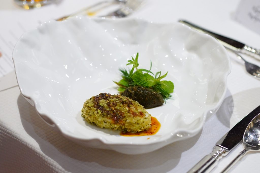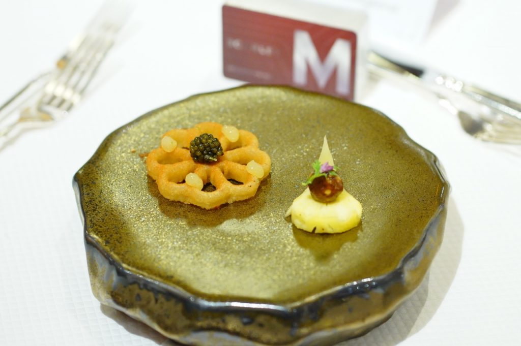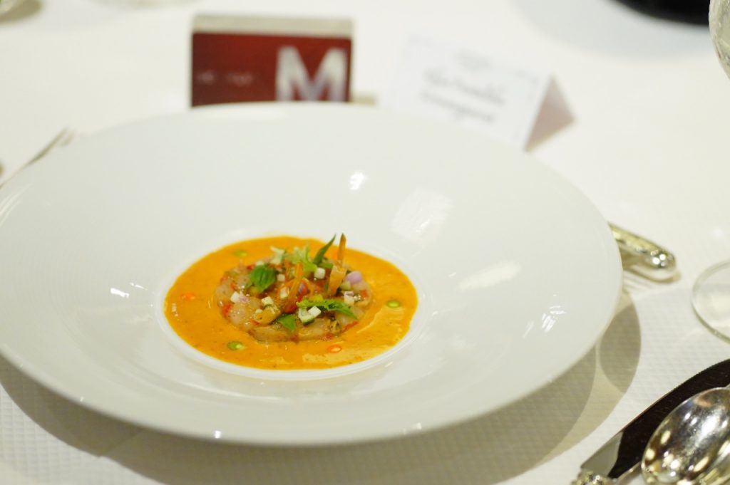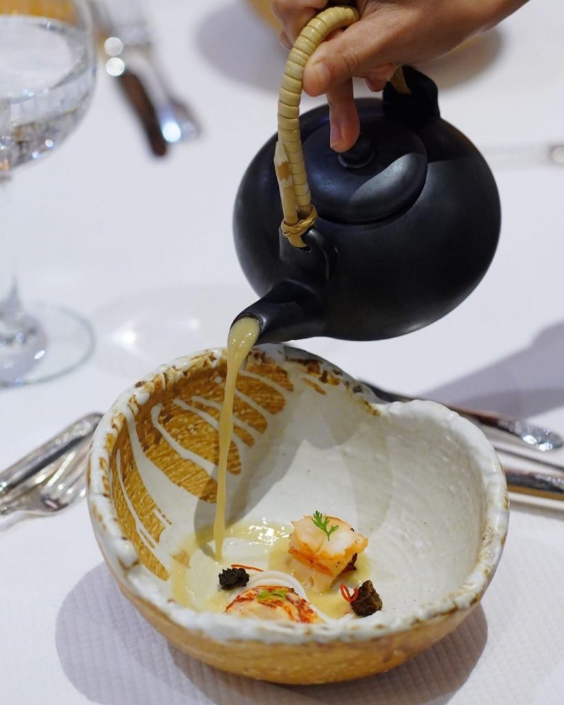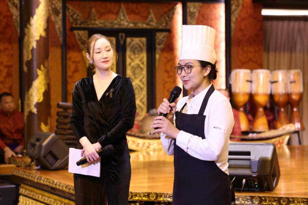 โดย เชฟป้อม พัชรา พิระภาค กับคอร์สเมนูอาหารไทย 8 คอร์ส ที่วัตถุดิบแปลกใหม่ผสมผสานความเป็นเอกลักษณ์เฉพาะของรสชาติได้อย่างอร่อยลงตัว อาทิ ม้าฮ่อ ขนมดอกขจร มะเขือเทศต้มยำและคริสตัลคาเวียร์ ก้อยกุ้งแดงกับมะม่วงขิงและกุ้งกรอบ แกงคั่วเนื้อวากิวย่างกระเจี๊ยบเขียวแดงและรากบัว พร้อมทั้งเมนูสุดพิเศษจากสก๊อตรังนกแท้สีเหลืองทองระดับพรีเมียม ถ่ายทอดออกมาเป็นเมนูของหวานอย่างส้มฉุนที่ให้รสชาติละเมียดละไม