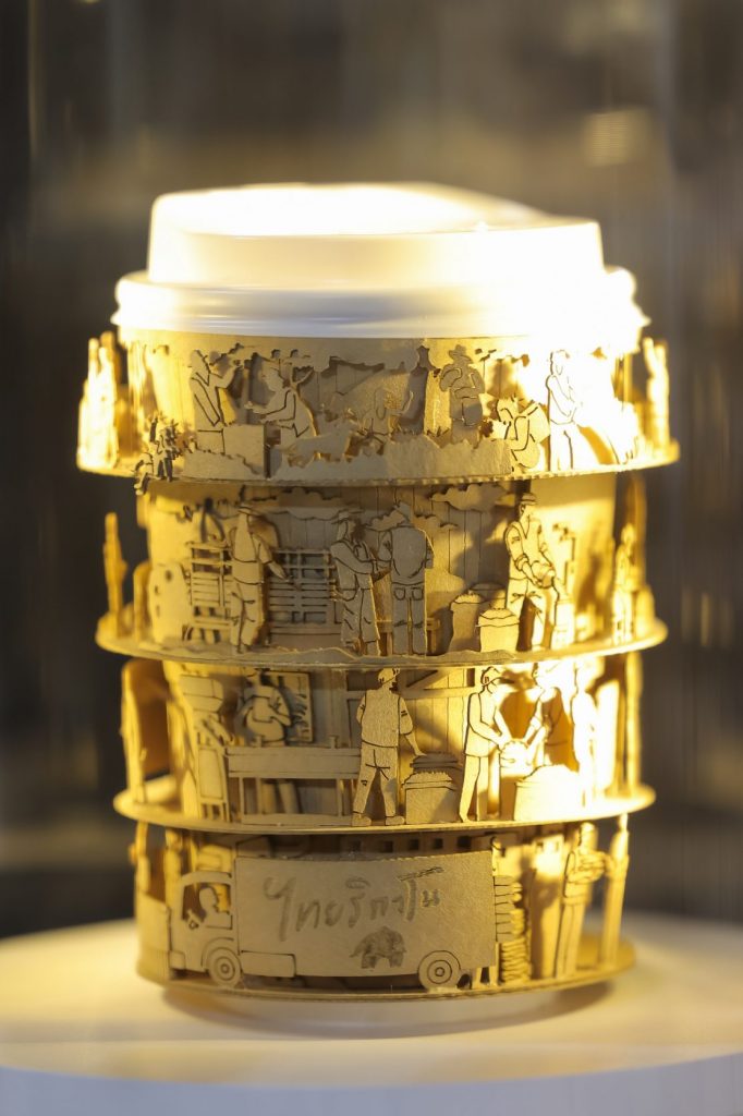 งานเปิดตัว Punthai Thai Coffee to The World ที่ผ่านมา นอกจากผู้ร่วมงานจะได้ดื่มด่ำกับกาแฟไทยในแก้วลิมิเต็ดอิดิชัน ที่เปิดตัวในงานเป็นครั้งแรกแล้ว ยังได้ชื่นชมกับผลงานศิลปะของ คุณสุรชัย พุฒิกุลางกูร ที่เนรมิตแก้วไทยริกาโนสุดอลังการสูงกว่า 3 เมตร รวมถึงโมเดลแก้วจำลอง 3 มิติ มาให้ได้ชมทุกรายละเอียดกันแบบ 360 องศา และนี่คือจุดเริ่มต้นของความฝันที่ยิ่งใหญ่ เพราะหมุดหมายสำคัญของพันธุ์ไทย ไม่เพียงนำกาแฟไทยไปสู่ระดับโลก แต่ยังมุ่งมั่นที่จะสร้างคุณค่าในระดับสากล ด้วยการร่วมมือกับศิลปินไทยชื่อดังระดับโลก สร้างสรรค์งานศิลปะบนแก้วกาแฟ เพื่อนำเสนอสู่สายตาชาวโลก ผ่านสื่อโฆษณา และเวทีประกวดชั้นนำของโลก เพราะทุกรายละเอียดของกาแฟแก้วนี้เต็มไปด้วย ความรัก และความมุ่งมั่นที่จะทำให้กาแฟไทยเป็นที่รักของทั่วโลก “THAIRICANO: A CUP OF LOVE” จึงไม่ใช่เพียงแก้วกาแฟธรรมดา แต่เป็นงานศิลปะที่สื่อสารความภาคภูมิใจของกาแฟไทยสู่สายตาชาวโลก และตอกย้ำปณิธานของพันธุ์ไทยในการสร้างสรรค์กาแฟคุณภาพที่ทั้งโลกหลงรัก ควบคู่ไปกับการพัฒนาอย่างยั่งยืนในทุกมิติ