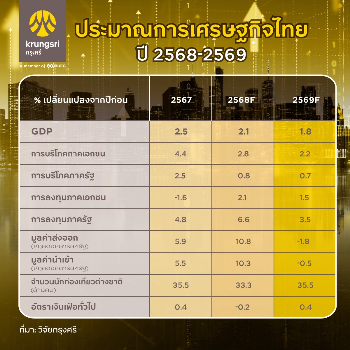 ประมาณการเศรษฐกิจไทยปี 2568-2569