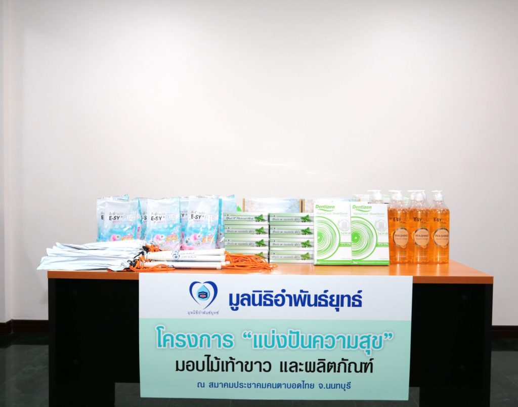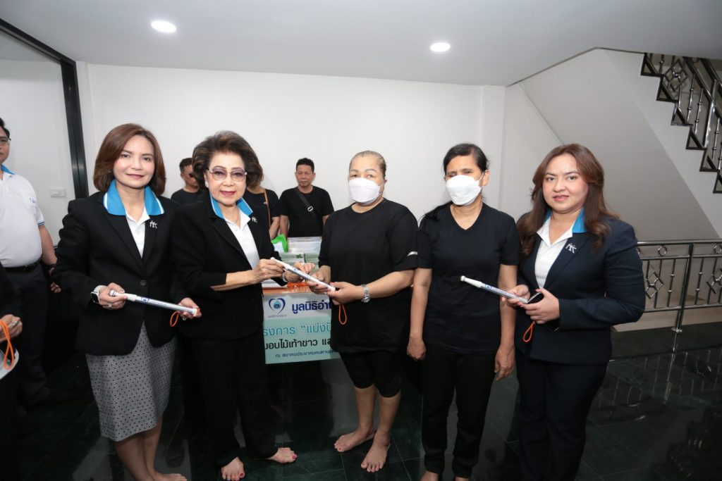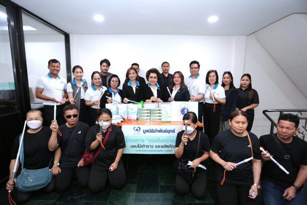 และพนักงานร่วมมอบไม้เท้าขาวเพื่อคนตาบอด และผลิตภัณฑ์คังเซน ให้กับสมาคมประชาคมคนตาบอดไทย Thai Association of The Blind Community โดยมี คุณดวงฤทัย กอดิษฐ์ ผู้เชี่ยวชาญประจำตัวนายกสมาคมประชาคมคนตาบอดไทยพร้อมเจ้าหน้าที่สมาคมฯ และตัวแทนคนตาบอดรับมอบ ณ สมาคมประชาคมคนตาบอดไทย จ.นนทบุรี