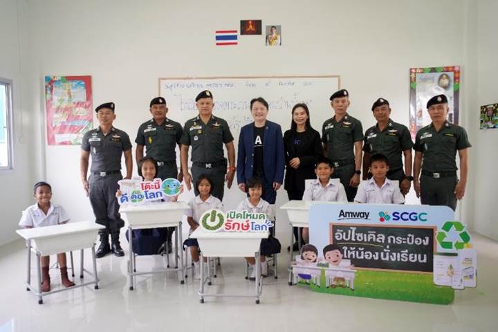 แอมเวย์ จับมือ SCGC ขับเคลื่อนเศรษฐกิจหมุนเวียนอัปไซเคิลบรรจุภัณฑ์พลาสติกใช้แล้วเป็นโต๊ะ-เก้าอี้นักเรียน ส่งมอบให้โรงเรียน ตชด. กองกำกับการตำรวจตระเวนชายแดนที่ 11 ปลูกฝังจิตสำนึกเยาวชนไทยใส่ใจสิ่งแวดล้อม