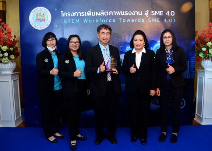 นายแพทย์ศิริชัย ลิ้มสกุล ผู้อำนวยการ บริษัท ผลิตภัณฑ์สมุนไพรไทย จำกัด (ไทยเฮิร์บ) บริษัทร่วมทุนขององค์การเภสัชกรรม เข้ารับมอบโล่ห์เกรียติคุณสถานประกอบการที่มีประสิทธิภาพแรงงานสูงผ่านเกณฑ์มาตรฐานภายใต้โครงการเพิ่มผลิตภาพแรงงานไทยสู่ SME 4.0 จากกรมพัฒนาฝีมือแรงงาน โดยมีศาสตราจารย์ นฤมล ภิญโญ สินวัฒน์ รัฐมนตรีช่วยว่าการกระทรวงแรงงาน เป็นผู้มอบ เพื่อเป็นการมุ่งเน้นทำให้เกิดการพัฒนาศักยภาพกำลังแรงงาน ผู้ประกอบกิจการ และผลิตภาพแรงงาน