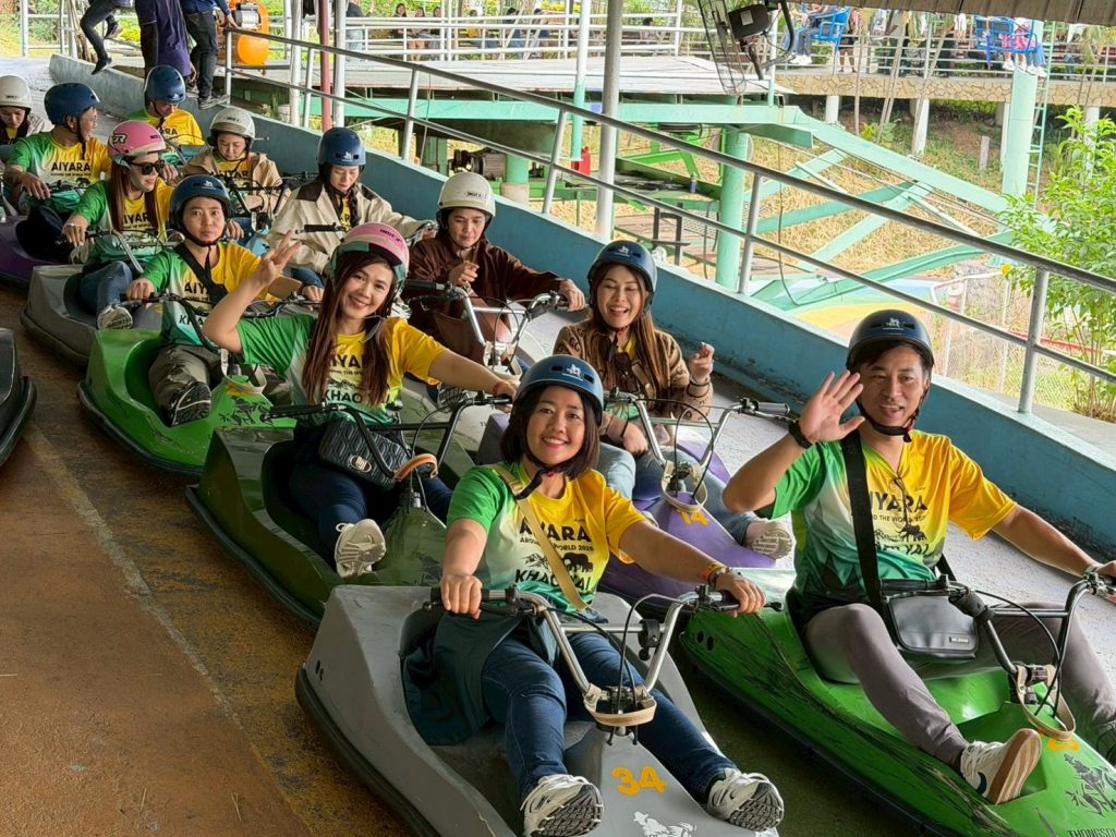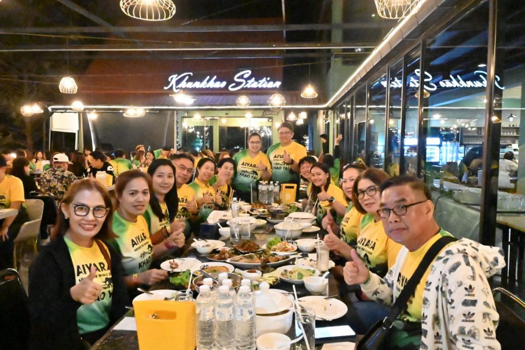 ทริปเริ่มต้นด้วยบรรยากาศที่เต็มไปด้วยรอยยิ้มและความสดใส สมาชิกเดินทางสู่เขาใหญ่พร้อมรับประทานอาหารกลางวันที่ร้าน “บ้านไม้ชายน้ำ” ก่อนสนุกกับกิจกรรมแอดเวนเจอร์ ณ “ทองสมบูรณ์คลับ” ที่เรียกเสียงหัวเราะและความสนุกสนานไม่ขาดสาย