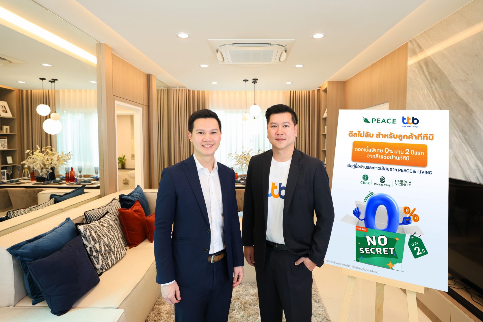 นายอธิศ วงศ์ศศิธร (ขวา) รองประธานเจ้าหน้าที่บริหาร หัวหน้าผลิตภัณฑ์สินเชื่อมีหลักประกัน ทีเอ็มบีธนชาต และ นายโดม ศิริโสภนา (ซ้าย) กรรมการผู้จัดการ พีซแอนด์ลีฟวิ่ง จำกัด มหาชน ร่วมเติมเต็มความฝันให้คนไทยได้เป็นเจ้าของบ้านคุณภาพดี ในราคาที่เอื้อมถึง จัดแคมเปญสินเชื่อบ้าน ร่วมมอบโปรโมชันสุดพิเศษด้วยอัตราดอกเบี้ยที่คุ้มค่า 0% ต่อปี นาน 2 ปีแรก ผ่อนสบาย ล้านละ 2,800 บาทต่อเดือน และสามารถเลือกผ่อนชำระได้นานสูงสุดถึง 35 ปี ฟรี ค่าประเมินราคาหลักทรัพย์และค่าเบี้ยประกันอัคคีภัย เมื่อกู้ซื้อบ้านกับสินเชื่อบ้านทีทีบี พร้อมทั้งรับสิทธิพิเศษเพิ่มเติมจาก พีซแอนด์ลีฟวิ่ง อาทิ รับค่าตกแต่งเพิ่มเติมสูงสุด 500,000 บาท สำหรับผู้ที่จองและทำสัญญา พร้อมจดทะเบียนจำนอง บ้านเดี่ยว บ้านแฝด ทาวน์โฮม ในเครือพีซแอนด์ลีฟวิ่ง ภายใต้ 5 โครงการ CHER สุขสวัสดิ์ – พุทธบูชา, CHER WESTVILLE ราชพฤกษ์, CHER ราชพฤกษ์ – พระราม 5, CHEREA VICINITY ราชพฤกษ์ – เจษฎาบดินทร์ และ CHERENE กรุงเทพกรีฑา – ร่มเกล้า ตั้งแต่วันนี้ ถึง 30 กันยายน 2567นี้