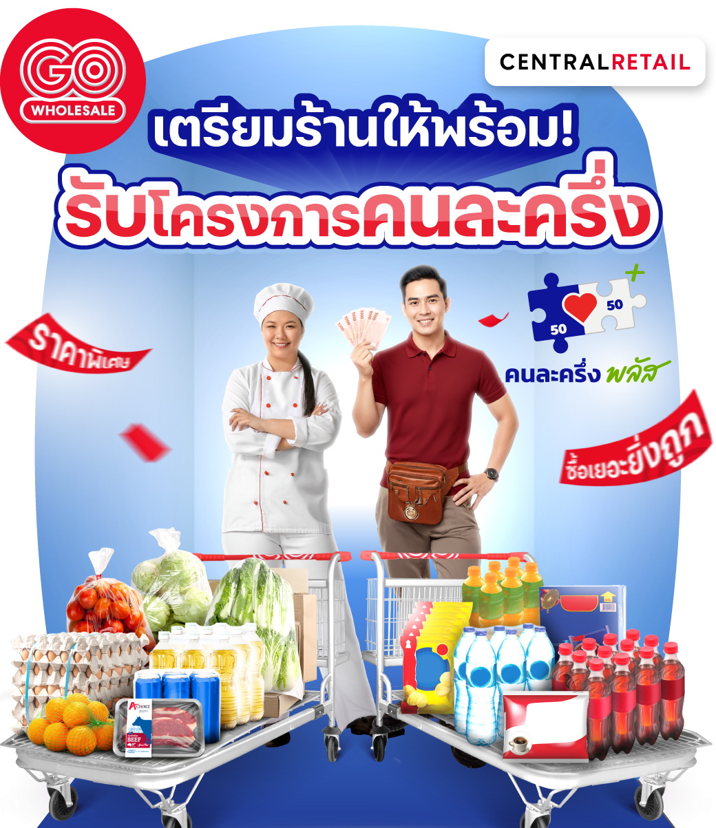 สำหรับแคมเปญของ โก โฮลเซลล์ มุ่งเน้นเตรียมความพร้อมให้ผู้ประกอบการรายย่อย ร้านค้าที่ลงทะเบียนกับโครงการคนละครึ่งพลัส ไม่ว่าจะเป็น ร้านอาหาร กลุ่มโฮเรก้า ร้านค้าปลีกขนาดเล็ก ได้มีแหล่งซื้อวัตถุดิบหรือสินค้าราคาพิเศษ ทั้ง วัตถุดิบอาหารสด ผลไม้ เนื้อสัตว์ อาหารทะเล สินค้าอุปโภคบริโภค หมุนเวียนกันมาลดราคาทุก 2 สัปดาห์ พร้อมแจกคูปองส่วนลดสูงสุด 400 บาท ในทุก 2 สัปดาห์ และยังปรับเปลี่ยนโปรโมชั่นเพื่อเพิ่มความคุ้มค่าให้กับผู้ประกอบการอย่างต่อเนื่องอีกด้วย (ดูรายละเอียดเพิ่มเติม https://centralfoodwholesale.co.th/half-half-coupon)