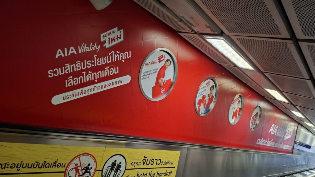 หนึ่งในไฮไลต์สำคัญ คือสื่อบิลบอร์ดยักษ์บริเวณสถานีรถไฟฟ้าใจกลางกรุงเทพฯ ที่ได้ AIA Vitality Ambassador ‘หมาก ปริญ สุภารัตน์’ มาเติมพลังด้วยท่า “หัวใจสุขภาพดี” เพื่อชวนคนเมืองลุกขึ้นมาขยับแบบง่าย ๆ ในทุกวัน พร้อมส่งข้อความ “AIA Vitality รูปแบบใหม่ รวมสิทธิประโยชน์ให้คุณเลือกได้ทุกเดือน” ด้วย Monthly Rewards และ Vitality Bonus สูงสุด 20% ของเบี้ยประกันภัย* ให้คนไทยได้ทั้งความคุ้มค่าและสุขภาพดีไปพร้อมกัน ตามคำมั่นสัญญา ‘Healthier, Longer, Better Lives – เพื่อสุขภาพและชีวิตที่ดีขึ้น’