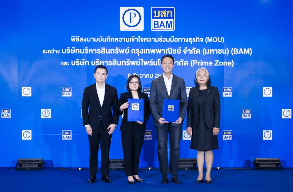 BAM ขยายความร่วมมือธุรกิจ จับมือ Prime Zone ผู้ประกอบธุรกิจบริหารสินทรัพย์ เสริมความแข็งแกร่งทางธุรกิจร่วมกัน ทั้งทางด้าน NPL และ NPA เพื่อเพิ่มโอกาสในการสร้างรายได้ และต่อยอดความสำเร็จ ในการสร้างพันธมิตรทางธุรกิจ
