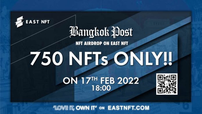 จากที่ได้ประกาศความร่วมมือกันอย่างเป็นทางการระหว่าง Bangkok Post และ EAST NFT เมื่อไม่นานมานี้ก็ถือเป็นการสิ้นสุดการรอคอยแล้ว เพราะBangkok Post ประกาศเปิดตัวคอลเลคชั่นแรกที่มีชื่อว่า “Thematic Collage Art” ผลงานสำคัญจากบันทึกเรื่องราวของไทยที่เคยเป็นข่าวผ่านหน้าหนังสือพิมพ์มาแล้ว มานำเสนอในรูปแบบผลงาน NFT อย่างที่ไม่เคยเห็นที่ไหนมาก่อน
