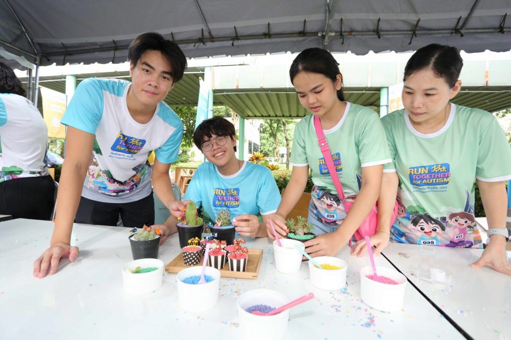 กิจกรรมวิ่งการกุศล Run Together For Autism วิ่งด้วยกันรันเพื่อ…น้อง นอกจากจะมีกิจกรรมวิ่งเป็นไฮไลท์แล้ว ภายในงานมีการจัดนิทรรศการจากสถาบันแห่งชาติเพื่อพัฒนาเด็กและครอบครัว คณะครู นักวิชาชีพสาขาต่างๆจัดซุ้มให้ความรู้ด้านออทิสติกอย่างครบถ้วน อาทิ THAI model (home program for autism) หนังสือนิทานสำหรับเด็ก กิจกรรมดนตรี เพื่อการเรียนร่วม และ เพิ่มสีสันสร้างความอิ่มเอมใจให้กับผู้ร่วมงาน และมี 4 กิจกรรมเวิร์คช็อปโดยยุวชนนักเรียน High school จิตอาสาในกลุ่ม Beyond the Spectrum ร่วมสร้างสีสัน อาทิ กิจกรรมร้อยลูกปัด ส่งเสริมสมาธิ ฝึกทักษะการใช้มือสองข้างและกล้ามเนื้อมัดเล็ก “Art Painting D.I.Y.” การจุ่มสี..ให้น้องหมี ด้วยสีรักษ์โลก TOA Organic Care สร้างสรรค์น้องหมี Bear Brick หนึ่งเดียวในสไตล์คุณ ลูกโป่งใสไฟ LED ของขวัญสุขใจผู้ให้ถูกใจผู้รับ กระบองเพชรDIY สร้างเสริมจินตนาการ