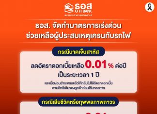 ธอส. จัดทำมาตรการเร่งด่วนช่วยเหลือลูกค้าที่ประสบเหตุเครนหล่นทับรถไฟ ลดดอกเบี้ยเหลือ 0.01% ต่อปี ให้ลูกค้าที่ได้รับบาดเจ็บสาหัส – เสียชีวิต