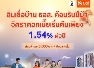 ธอส. ชู 5 สินเชื่อเด่น หนุนคนไทยมีบ้านต้อนรับปีม้า ดอกเบี้ยเริ่มต้นเพียง 1.54% ต่อปี ผ่อนเพียงล้านละ 3,000...