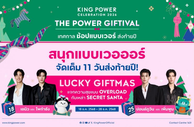 คิง เพาเวอร์ ต้อนรับเทศกาลแห่งความสุข ชวน 2 คู่สุดฮอตและลูก ๆ ร่วมกิจกรรม LUCKY GIFTMAS ในงาน “KING POWER CELEBRATION 2026 THE POWER...