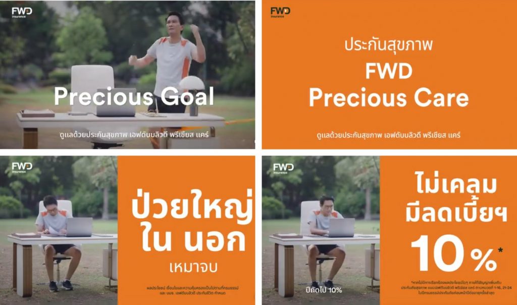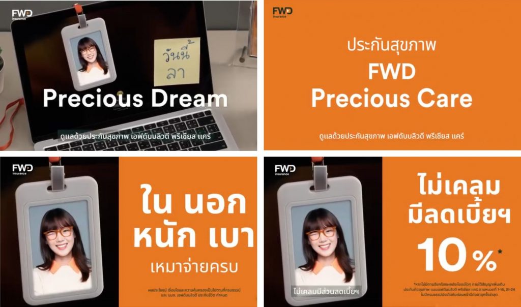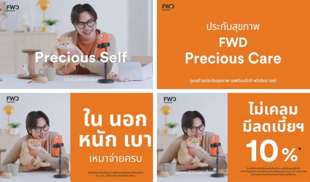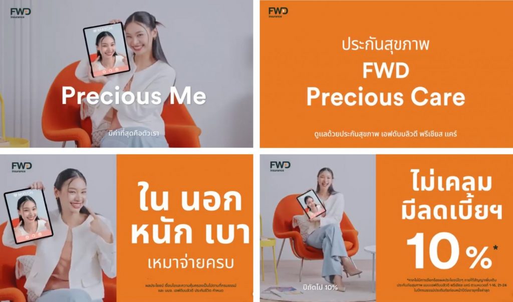 และสื่อบีทีเอส ตั้งแต่วันนี้เป็นต้นไป และผู้ที่สนใจผลิตภัณฑ์ FWD Precious Care สามารถติดต่อหรือสอบถามข้อมูลเพิ่มเติม ผ่านช่องทาง FWD Contact Center 1351 หรือผ่านทางเว็บไซต์ https://www.fwd.co.th