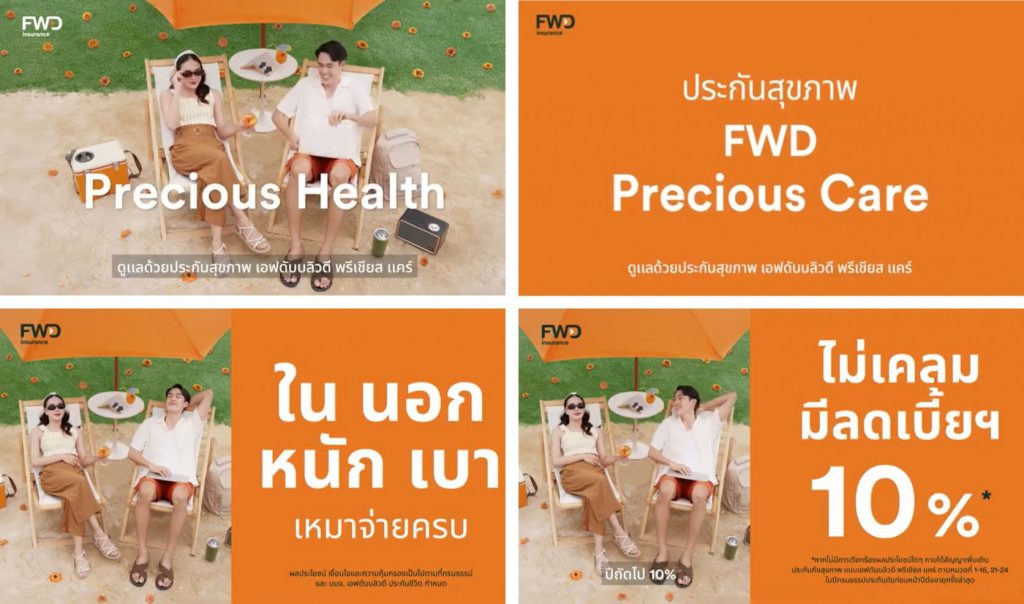 จึงเป็นอีกหนึ่งทางเลือกที่สำคัญในการวางแผนการเงินที่แข็งแรง ด้วยแนวทางการทำงานที่ยึดความต้องการของลูกค้าเป็นหลัก เราจึงได้ออกแบบประกันสุขภาพ FWD Precious Care ให้เป็นตัวช่วยในการดูแลค่ารักษาพยาบาลแบบเหมาจ่ายตามจริง ดูแลครบทั้งผู้ป่วยใน (IPD) และผู้ป่วยนอก (OPD) คุ้มครองสูงสุดถึงอายุ 99 ปี และมอบสิทธิประโยชน์ส่วนลด 10% สำหรับเบี้ยประกันภัยปีต่ออายุสำหรับลูกค้าที่ไม่มีเคลมในรอบปีกรมธรรม์ที่ผ่านมา นอกจากนี้ลูกค้ายังสามารถเลือกความคุ้มครอง OPD Plus เพื่อเพิ่มวงเงินค่ารักษาพยาบาลผู้ป่วยนอกตามความต้องการของลูกค้า FWD Precious Care จึงเป็นโซลูชั่นที่ช่วยให้ลูกค้าสามารถวางแผนและจัดการค่าใช้จ่ายด้านสุขภาพได้อย่างเหมาะสมตรงกับความต้องการและความจำเป็นในแต่ละช่วงชีวิต”