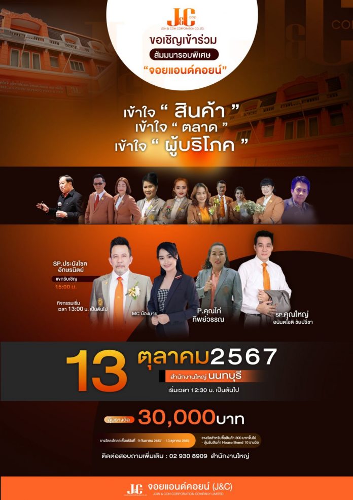 นำพาความรู้คู่ธุรกิจมาให้กับสมาชิกนักธุรกิจอยู่เสมอสำหรับธุรกิจโมเดิร์นเทรดในระบบเครือข่าย จอย แอนด์ คอยน์ คอร์ปอเรชั่น (J&C) รวมถึงครั้งนี้เมื่อวันที่ 13 ตุลาคมที่ผ่านมาก็ได้จัดสัมมนารอบพิเศษที่มาพร้อมความรู้ความเข้าใจโดยเฉพาะการเข้าใจ “สินค้า” เข้าใจ “ตลาด” เข้าใจ “ผู้บริโภค”