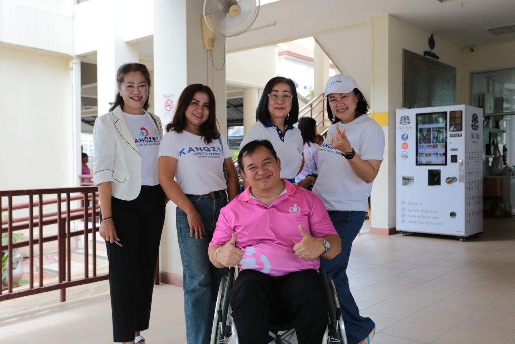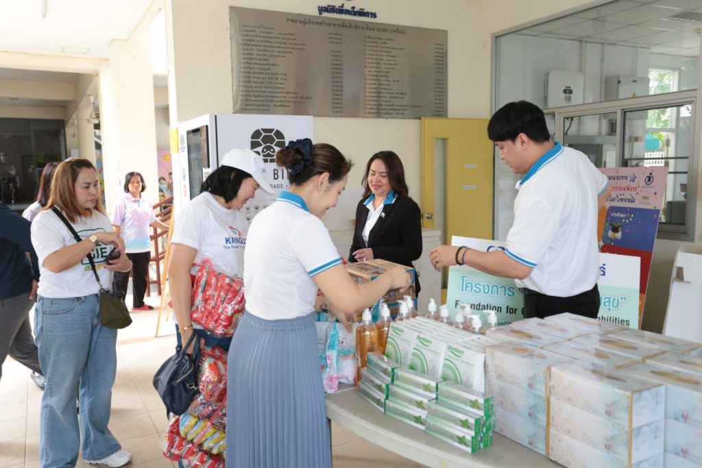 โดยเดินทางไปร่วมกิจกรรมมอบทุนสนับสนุน และเลี้ยงอาหารกลางวันให้กับเด็กๆ รวมถึงมอบผลิตภัณฑ์คังเซน สิ่งของเครื่องใช้ นม และขนม เพื่อร่วมสนับสนุนการดำเนินการของมูลนิธิเพื่อคนพิการ