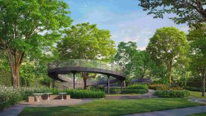 ในส่วนของการออกแบบพื้นที่ส่วนกลางของโครงการยังตอบโจทย์การใช้ชีวิตอย่างลงตัว ทั้ง Lobby ขนาดใหญ่แยกส่วนในแต่ละอาคาร จึงทำให้สามารถพาเพื่อนมาทำกิจกรรมได้โดยไม่รบกวนความเป็นส่วนตัวของผู้พักอาศัย และพื้นที่กิจกรรมเพื่อสุขภาพขนาดใหญ่ ทั้ง Urban Roof Forest Park, The Spiral Treetop Passage, Observation Circular Tree House, Gathering Leisure Lounge, Outdoor Skate Garden, Cabin Playground พื้นที่กิจกรรมสำหรับครอบครัว, The Gym, Semi Outdoor Yoga และ Blue Lagoon Wellness Pool ที่มีความยาวถึง 30 เมตร และอื่นๆ อีกมากมาย เพื่อให้เป็นที่พักอาศัยที่ตอบโจทย์ความต้องการในเรื่อง Well-being หรือการมีสุขภาวะกาย และใจที่ดี รวมไปถึงสุขภาวะทางสังคมและสิ่งแวดล้อม ผสานด้วยเทคโนโลยีที่ดีไซน์เพื่อการใช้ชีวิตให้ง่ายขึ้นอย่างลงตัว อาทิ IoT พร้อม Wifi ฟรี 1 ปีแรก จุดจอดรถแบบ EV Charger และไร้กังวลกับระบบรักษาความปลอดภัยแบบ Privacy System เพื่อความสุนทรียภาพแห่งการพักผ่อนและความน่าอยู่อย่างแท้จริง