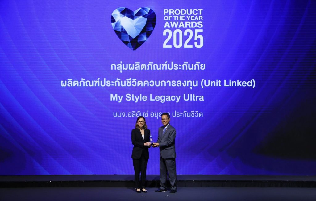 นางสาวพบพร พิพัฒน์สาธุกิจ ผู้อำนวยการอาวุโส ฝ่ายธุรกิจยูนิต ลิงค์ บมจ. อลิอันซ์ อยุธยา ประกันชีวิต รับรางวัล BUSINESS+ PRODUCT OF THE YEAR AWARDS 2025 กลุ่มผลิตภัณฑ์ประกันภัย ประเภทประกันชีวิตควบการลงทุน (Unit Linked) My Style Legacy ULTRA ที่ออกแบบเฉพาะเพื่อตอบโจทย์กลุ่มลูกค้าไฮเน็ตเวิร์ธ วางแผนการส่งต่อความมั่งคั่งและความมั่นคงให้คนที่รักอย่างมีประสิทธิภาพ  ความคุ้มครองชีวิตเริ่มต้นที่ 10 ล้านบาท และสามารถเพิ่มโอกาสรับผลตอบแทนสูงขึ้นผ่านการ Top-Up  วางแผนได้ตามเป้าหมาย มีความยืดหยุ่นในปรับเพิ่มลดความคุ้มครองชีวิต เป็นอีกหนึ่งแผนประกันจาก Ultra series ที่ได้รับเสียงตอบรับที่ดีอย่างมาก โดยได้รับเกียรติจาก ฯพณฯ นุรักษ์ มาประณีต องคมนตรี เป็นประธานมอบรางวัล ณ ห้องบอลรูม โรงแรมสวิสโฮเต็ล กรุงเทพฯ รัชดา