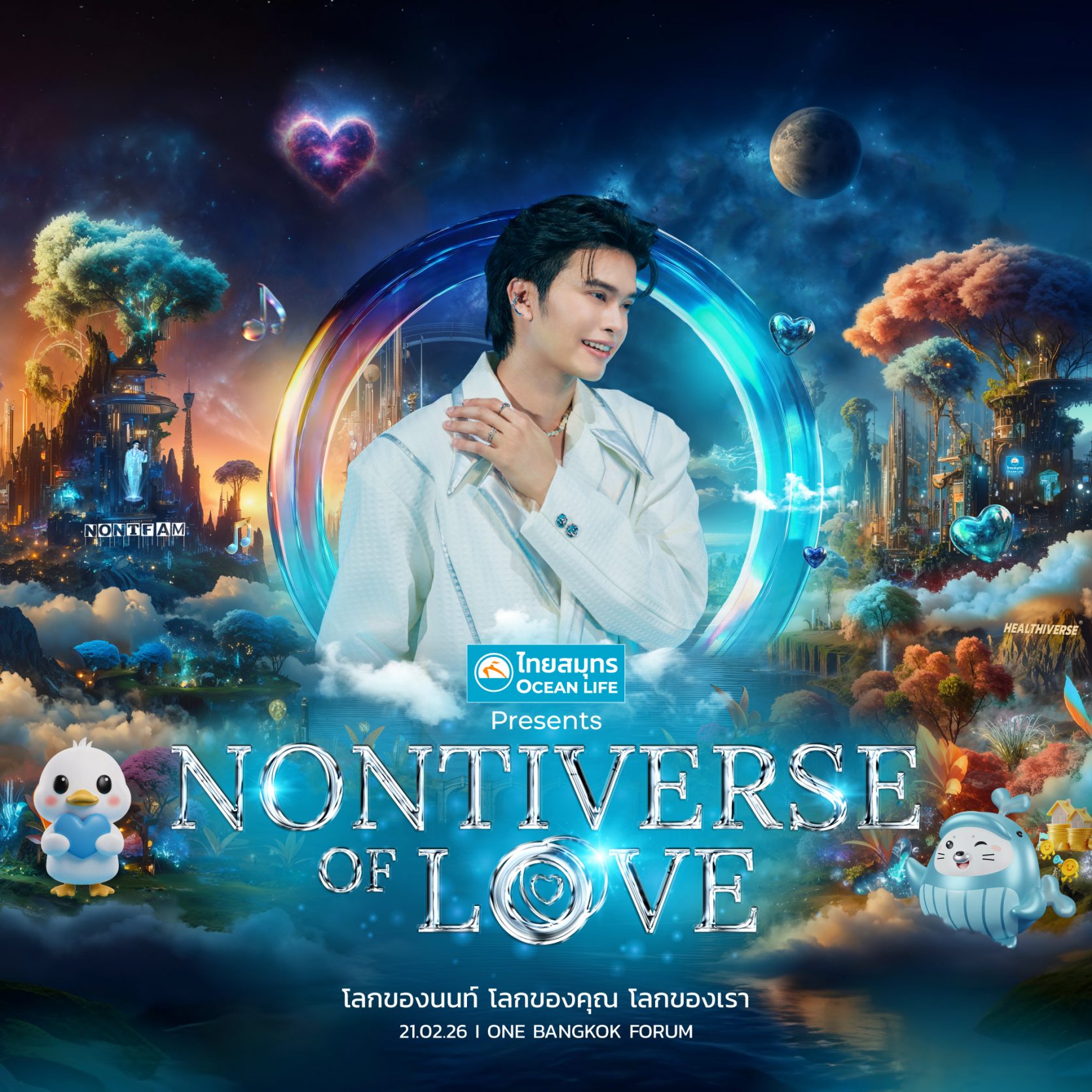NONTIVERSE of LOVE ออกแบบบรรยากาศให้ผู้ชมเสมือนหลุดเข้าสู่ “จักรวาลแห่งความรัก” ที่เต็มไปด้วยบทเพลงและเรื่องราวสร้างแรงบันดาลใจให้ทุกคนกลับมารักและดูแลตัวเองอีกครั้ง พร้อมแขกรับเชิญสุดพิเศษที่จะมาร่วมถ่ายทอดพลังบวกแห่งความรัก จัดขึ้นในวันที่ 21 กุมภาพันธ์ 2569 ณ One Bangkok Forum คอนเสิร์ตที่ตั้งใจให้ทุกคนได้รู้สึกถึงความรัก ประทับใจกับช่วงเวลาพิเศษและแขกรับเชิญสุดเซอร์ไพรส์ที่อยากให้รอติดตาม และไม่พลาดไปดูว่าโลกความรักของ “นนท์ ธนนท์” และ โลกความรักของ OCEAN LIFE ไทยสมุทร จะหลอมรวมกันได้ลงตัวอย่างไร