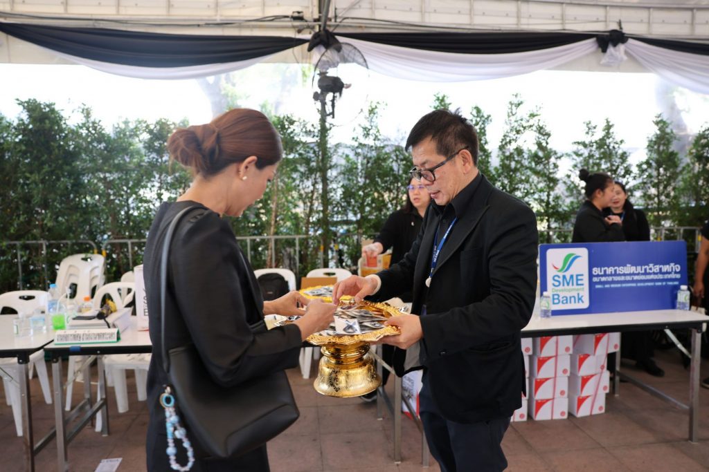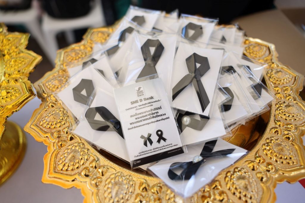 ด้วยการนำ “โบว์ริบบิ้นสีดำ” ซึ่งประดิษฐ์จากความร่วมแรงร่วมใจของผู้บริหาร พนักงาน SME D Bank มามอบให้แก่ประชาชนสำหรับติดบนเครื่องแต่งกาย เป็นสัญลักษณ์แห่งความอาลัยและความจงรักภักดี น้อมสำนึกในพระมหากรุณาธิคุณเป็นล้นพ้นอันหาที่สุดมิได้ รวมถึง ร่วมกันทำความสะอาดและปรับปรุงภูมิทัศน์โดยรอบ “วัดแก้วฟ้าจุฬามณี” ณ บริเวณท้องสนามหลวง และวัดแก้วฟ้าจุฬามณี เมื่อเร็ว ๆ นี้