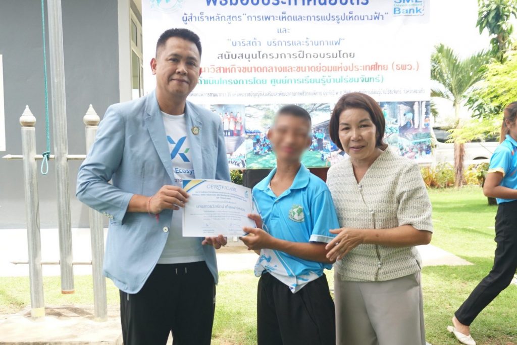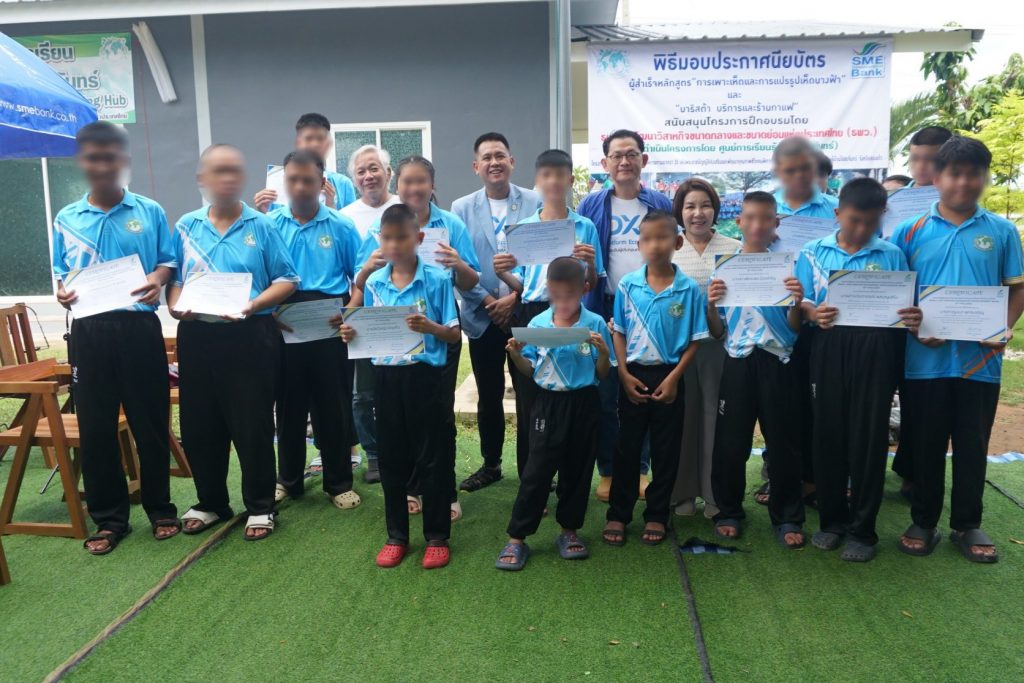 ธนาคารพัฒนาวิสาหกิจขนาดกลางและขนาดย่อมแห่งประเทศไทย (ธพว.) หรือ SME D Bank โดยนายเขมชาติ อภิรัชตานนท์ รองกรรมการผู้จัดการ พร้อมด้วยคณะผู้บริหารและเจ้าหน้าที่ ดำเนินกิจกรรมด้านความรับผิดชอบต่อสังคม และสิ่งแวดล้อม (CSR) โดยร่วมแสดงความยินดีในพิธีปิดโครงการสนับสนุนและส่งเสริมอาชีพคนพิการ ประจําปี 2568 หลักสูตร “การเพาะเห็ดและการแปรรูปเห็ดนางฟ้า” และหลักสูตร “บาริสต้าบริการ และร้านกาแฟ” พร้อมมอบใบประกาศนียบัตรแก่ผู้ผ่านการฝึกอบรม ซึ่งธนาคารจัดขึ้น เพื่อสร้างโอกาสในการประกอบอาชีพให้แก่ผู้พิการ สามารถพึ่งพาตนเองได้อย่างยั่งยืน รวมทั้ง เปิดกิจกรรม “ผักสวนครัว รั้วกินได้” นำความรู้ไปต่อยอดสร้างอาชีพ สร้างรายได้ให้แก่ตนเองและครอบครัว ณ ศูนย์การเรียนบ้านไร่ชมจันทร์ จ.สระแก้ว