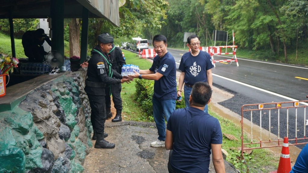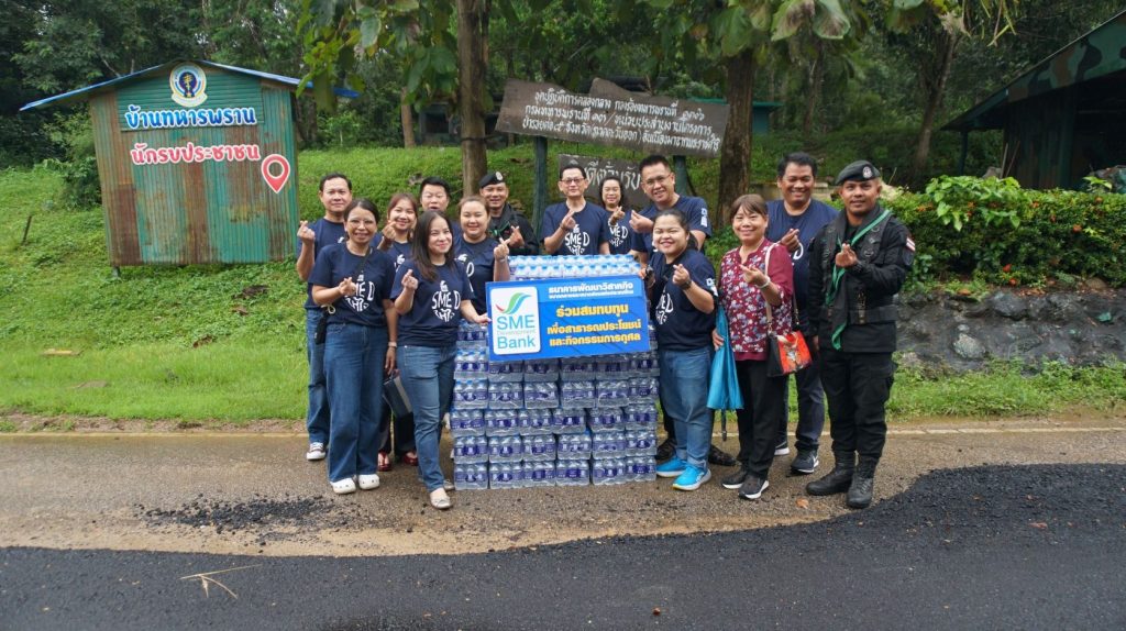 นอกจากนี้ ธนาคารแสดงความห่วงใย ต่อทหาร ประชาชน และผู้ปฏิบัติหน้าที่ในพื้นที่ชายแดนไทย-กัมพูชา ด้วยการร่วมส่งมอบน้ำดื่มให้แก่เจ้าหน้าที่ทหาร และสถานีอนามัยคลองตะเคียนชัย จ.สระแก้ว เพื่อใช้บริโภคหรือแจกจ่ายให้ประชาชนที่เข้ามาติดต่อในพื้นที่ สะท้อนถึงบทบาทของ SME D Bank ในการเป็น “ธนาคารเพื่อเอสเอ็มอีไทย” ที่ไม่เพียงมุ่งเน้นสนับสนุนผู้ประกอบการ ให้เติบโต แต่ให้ความสำคัญกับคุณภาพชีวิตของประชาชนและชุมชนอย่างต่อเนื่อง ณ จ.สระแก้ว เมื่อเร็ว ๆ นี้
