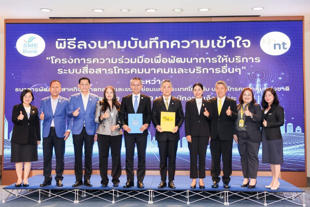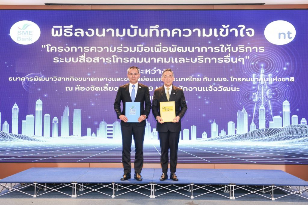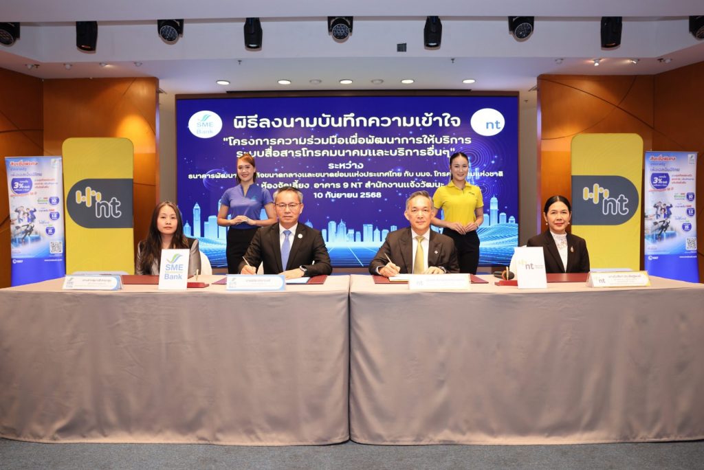 ความร่วมมือระหว่าง NT และ SME D Bank จะมีความร่วมมือในการทดลองและพัฒนาการให้บริการระบบเทคโนโลยีสารสนเทศ การสื่อสารโทรคมนาคม บริการดิจิทัล และบริการอื่นๆ รวมถึง เพื่อร่วมกันหาแนวทางในการดำเนินธุรกิจและกิจกรรมทางการตลาดร่วมกัน โดยร่วมมือในการพัฒนาปรับปรุงเครือข่ายสื่อสาร และให้บริการแก่ SME D Bank ด้วยเทคโนโลยีดิจิทัล ให้สามารถติดต่อสื่อสารได้อย่างรวดเร็วและมีประสิทธิภาพสูงสุด ส่งเสริมและการพัฒนาบุคลากรด้านเทคโนโลยีสารสนเทศให้มีทักษะความเชี่ยวชาญ และมีศักยภาพเพิ่มขึ้นด้วยเทคโนโลยีที่ทันสมัย ส่งเสริมการใช้งานทรัพยากรพื้นฐานขององค์กรร่วมกัน (Resource Sharing) เพื่อประโยชน์สูงสุดของทั้งสองฝ่าย และร่วมสนับสนุนแลกเปลี่ยนข้อมูลระหว่างกันเพื่อแสวงหาโอกาสทางการตลาด ตอบสนองความต้องการของผู้ประกอบการเอสเอ็มอีแบบครบวงจร พร้อมทั้งยกระดับในการให้บริการ โดย NT จัดให้มีบริการสื่อสารโทรคมนาคมที่เกี่ยวข้องให้กับ SME D Bank หรือลูกค้าของ SME D Bank ด้วยการให้บริการสื่อสารทางสายและไร้สาย บริการระบบโทรศัพท์ บริการอินเทอร์เน็ตความเร็วสูง บริการสื่อสารข้อมูล บริการสื่อสารผ่านดาวเทียม เป็นต้น รวมถึง การจัดให้มีบริการเทคโนโลยีดิจิทัลทางด้าน Application Software, Multimedia Conference, CCTV, Data Center และ Digital Solution Platform อันได้แก่ บริการ Ultimate Connect (AI Voice Bot), บริการ Bingsu (AI Chat Bot), บริการ Cyber Security และบริการระบบขายและบัญชี AccCloud เป็นต้น เพื่อทดลองใช้เป็นเครื่องมือให้ SME D Bank และผู้ประกอบการเอสเอ็มอี เพิ่มขีดความสามารถในการแข่งขัน และขยายตลาดโดยใช้เทคโนโลยีดิจิทัลต่อยอดด้วย Big Data และ AI ที่เป็นกลยุทธ์สำคัญที่ช่วยสร้างสมดุลระหว่างความเร็ว ความแม่นยำในการตัดสินใจ ทั้งเป็นปัจจัยชี้ขาดความสำเร็จในยุคดิจิทัลและ AI ได้อย่างมีประสิทธิภาพสูงสุดต่อไป