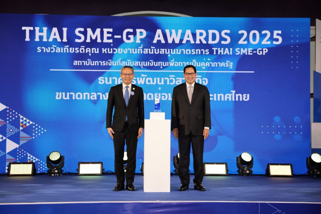 นายพิชิต มิทราวงศ์ กรรมการผู้จัดการ ธนาคารพัฒนาวิสาหกิจขนาดกลางและขนาดย่อมแห่งประเทศไทย (ธพว.) หรือ SME D Bank รับมอบโล่ประกาศเกียรติคุณ “THAI SME-GP AWARDS 2025” จากสำนักงานส่งเสริมวิสาหกิจขนาดกลางและขนาดย่อม (สสว.) ในฐานะหน่วยงานสถาบันการเงิน สนับสนุนการเข้าถึงแหล่งเงินทุนของผู้ประกอบการเอสเอ็มอี เพื่อการเป็นคู่ค้ากับภาครัฐ ประจำปีงบประมาณ 2567