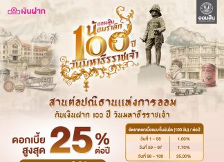 ออมสิน ออกเงินฝากส่งเสริมการออม น้อมรำลึกในพระมหากรุณาธิคุณ รัชกาลที่ 6 “เงินฝาก 100 ปี วันมหาธีรราชเจ้า” ฝาก 100...