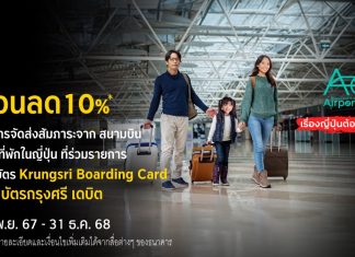 กรุงศรี (ธนาคารกรุงศรีอยุธยา จำกัด (มหาชน)) มอบสิทธิพิเศษสำหรับผู้ถือบัตร Krungsri Boarding Card และบัตรกรุงศรี เดบิต ทุกประเภท รับส่วนลด 10% เมื่อใช้บริการจาก Airporter จัดส่งสัมภาระจากสนามบิน โรงแรม หรือห้องพักในญี่ปุ่น ที่ร่วมรายการ โดยจองบริการผ่าน https://airporter.co.jp/ และระบุรหัสโปรโมชัน...
