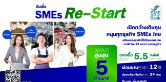 SME D Bank ปลื้ม “สินเชื่อ SMEs Re-Start” กระแสตอบรับล้นหลาม ลุยเพิ่มวงเงินโครงการอีก 3,000 ล้านบาท พร้อมขยายเกณฑ์ เปิดกว้างครอบคลุมทุกกลุ่มธุรกิจ อัตราดอกเบี้ยเริ่มต้น 5.5% ต่อปี วงเงินกู้สูงสุด 5 ล้านบาท ผ่อนสบาย ๆ นาน 12 ปี...