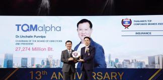 บริษัท ทีคิวเอ็ม อัลฟา จำกัด (มหาชน) หรือ TQMalpha ได้รับรางวัล ‘Thailand’s Top Corporate Brands 2022’ มูลค่าแบรนด์องค์กรสูงสุดในไทย หมวดธุรกิจประกันภัยและประกันชีวิต ด้วยมูลค่าแบรนด์ 27,274 ล้านบาท ในงาน ASEAN and Thailand 's Top...